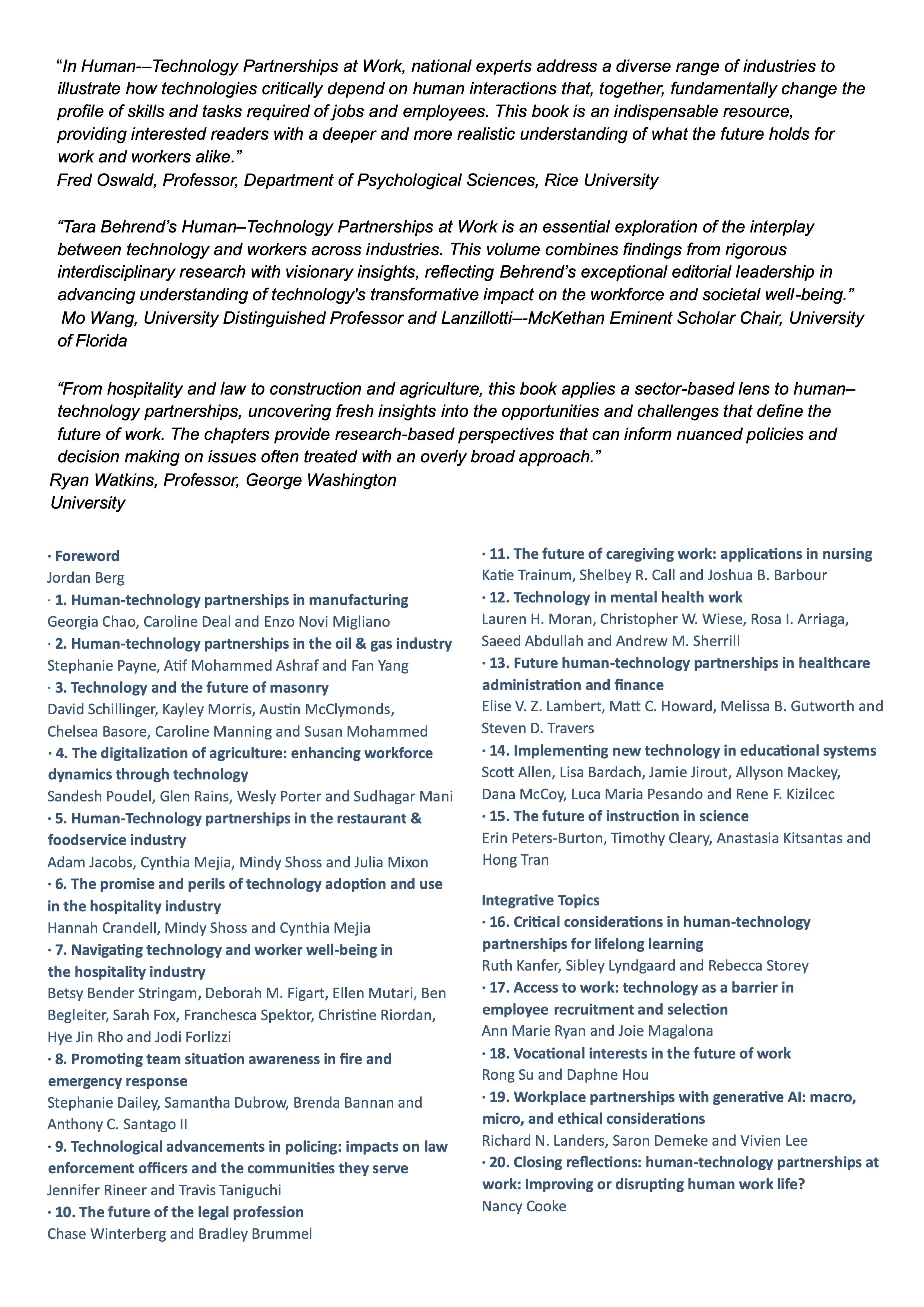 Human-Tech Partnerships at Work Published!
