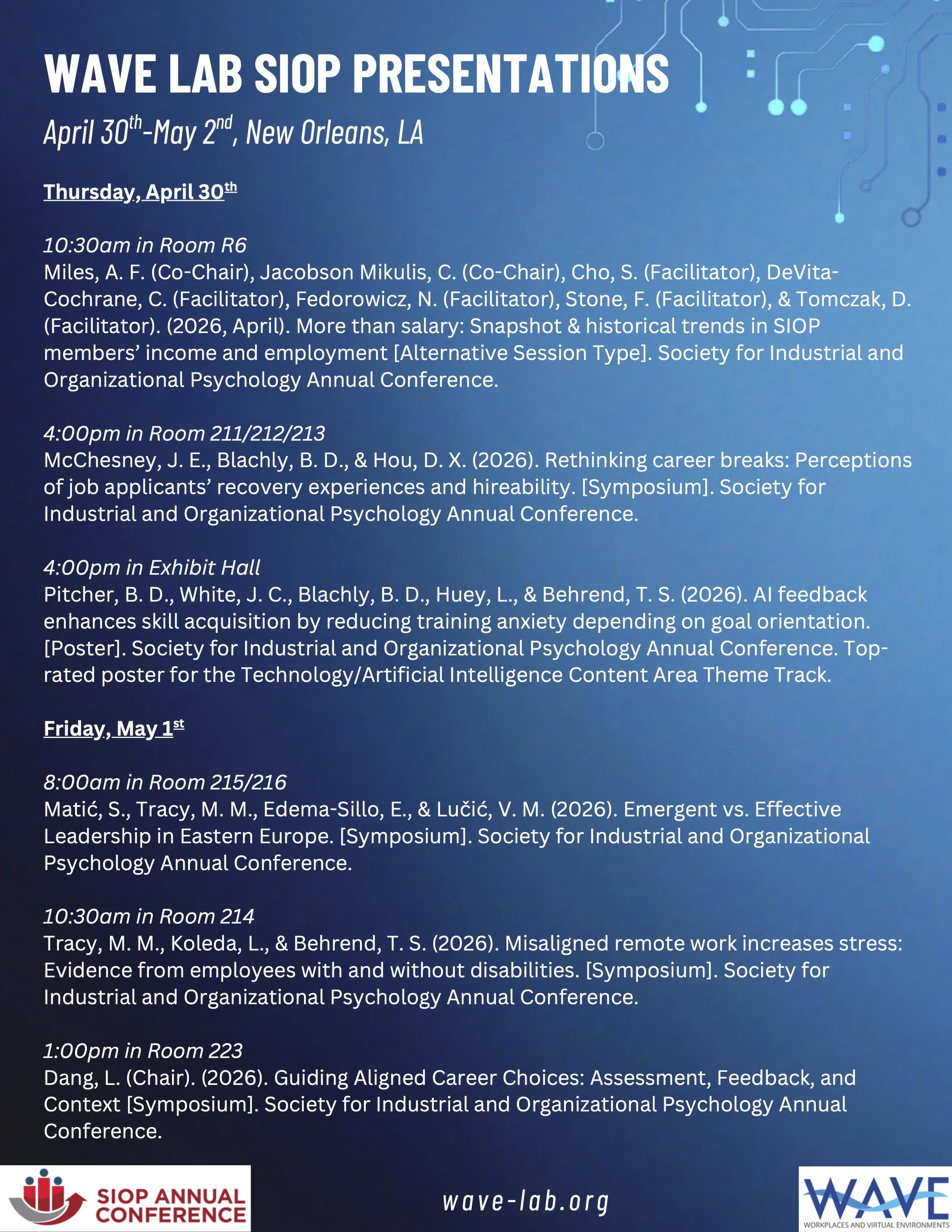 SIOP 2026 Presentations Feb 10 Written By WAVE Lab Be sure to check out the following WAVE Lab presentations at this year’s SIOP conference in New Orleans! WAVE Lab